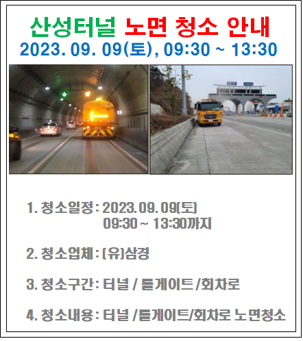 산성터널 노면 청소 안내