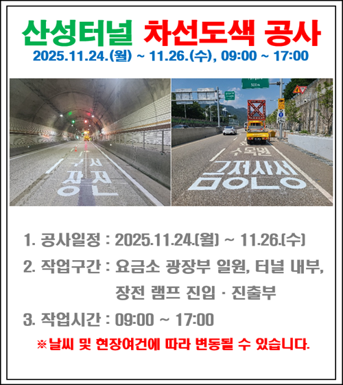 산성터널 차선도색 공사 2025.11.24~11.26[완료]