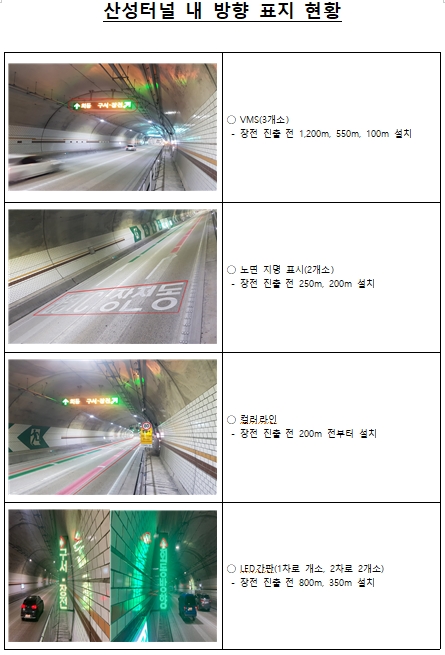 끝지점에서 네비가 작동되지 않으니 2~3번 확실히 터널내 전광판으로 안내해 주시도록 요청합니다
